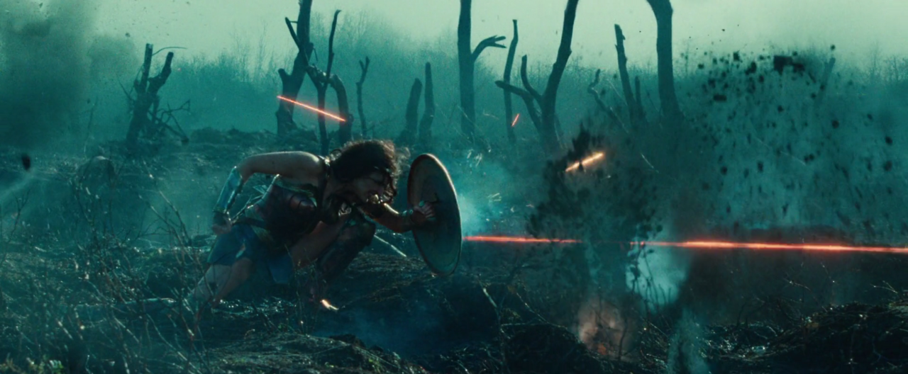 For the most part, the action is strong here. Jenkins really lets the physicality of her actors come through here, and she opts for a lot of wide shots that lets the action come across more easily. The action is held back by a few issues however. The editing tends to be choppy at times. I’ve seen far worse fight scene editing, but it could definitely be cleaner. A common criticism of this movie is the slow motion is excessive, and frankly that’s an understatement. But worst of all is that the CGI really doesn’t hold up here, which really makes me upset to admit. It feels like every effect looks unfinished, especially when Gal Gadot is replaced by a digital model that jumps around weightlessly. There are two major exceptions however. The first is the beach skirmish, where Amazon warriors fight a battalion of Germans in a thrilling sequence. The second of course is No Man’s Land.